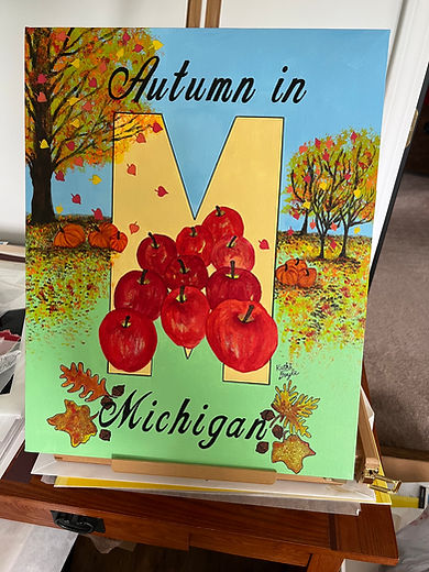 "Autumn in MI" Acrylic painting. 16" x 20" Currently framed in black. SOLD